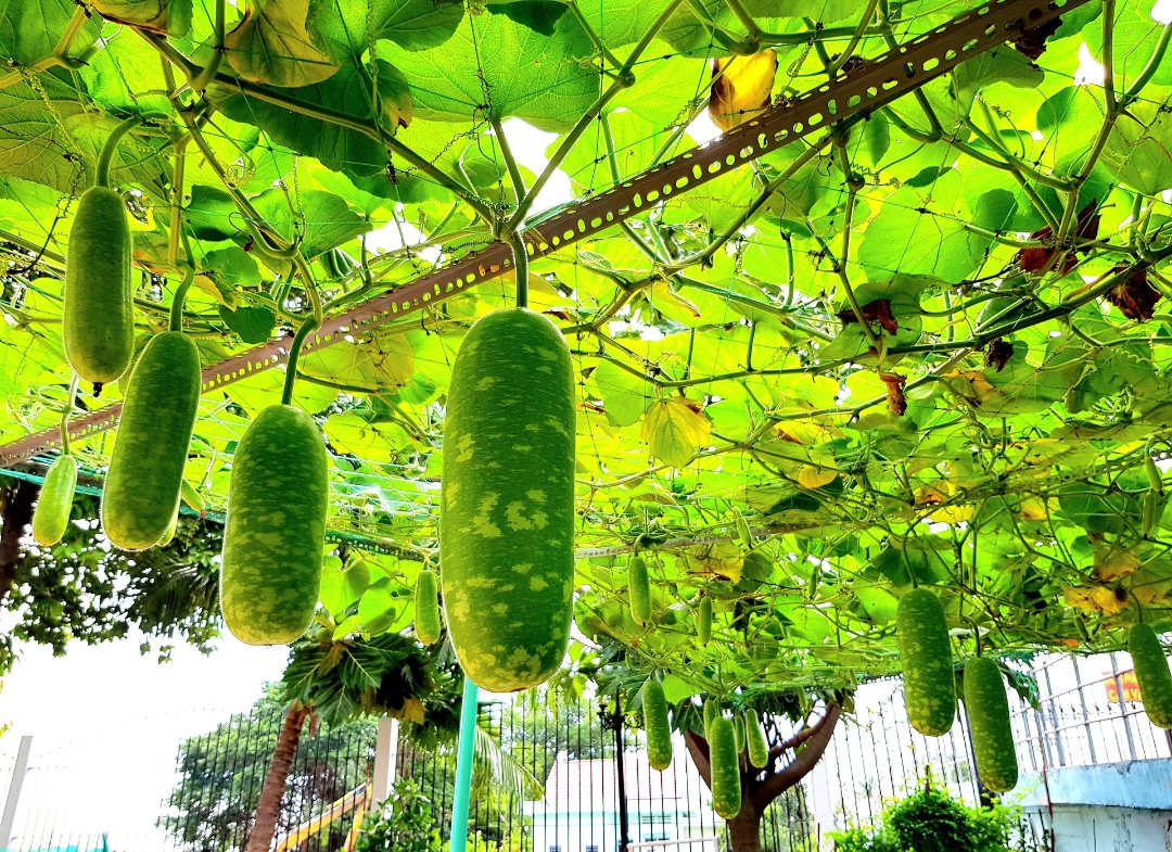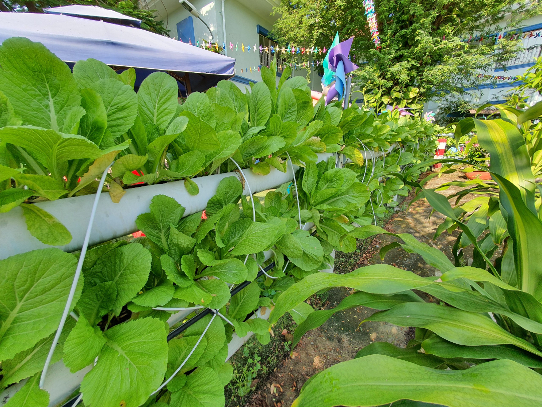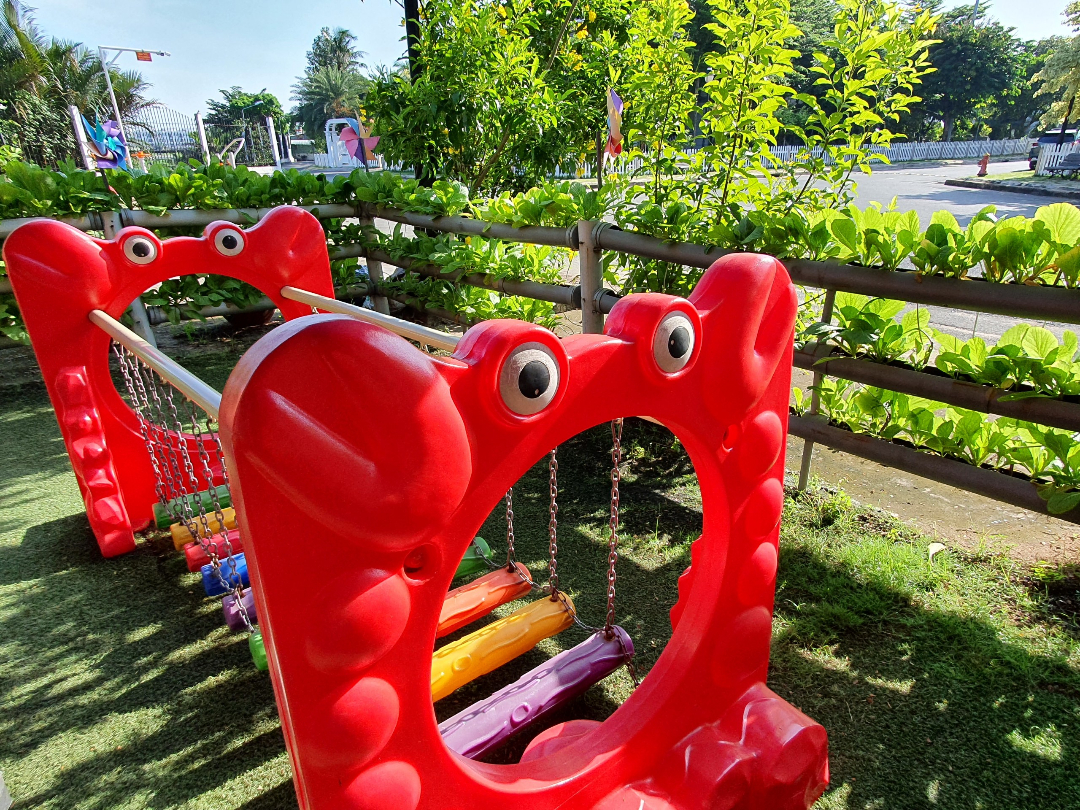 Khuôn viên trường còn có vườn rau xanh mướt, cho bé các hoạt động trải nghiệm thu hoạch rau thú vị và bổ ích.