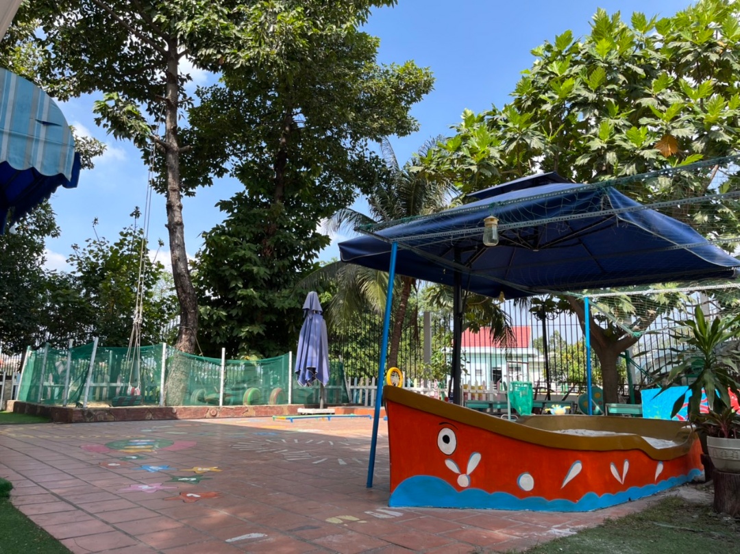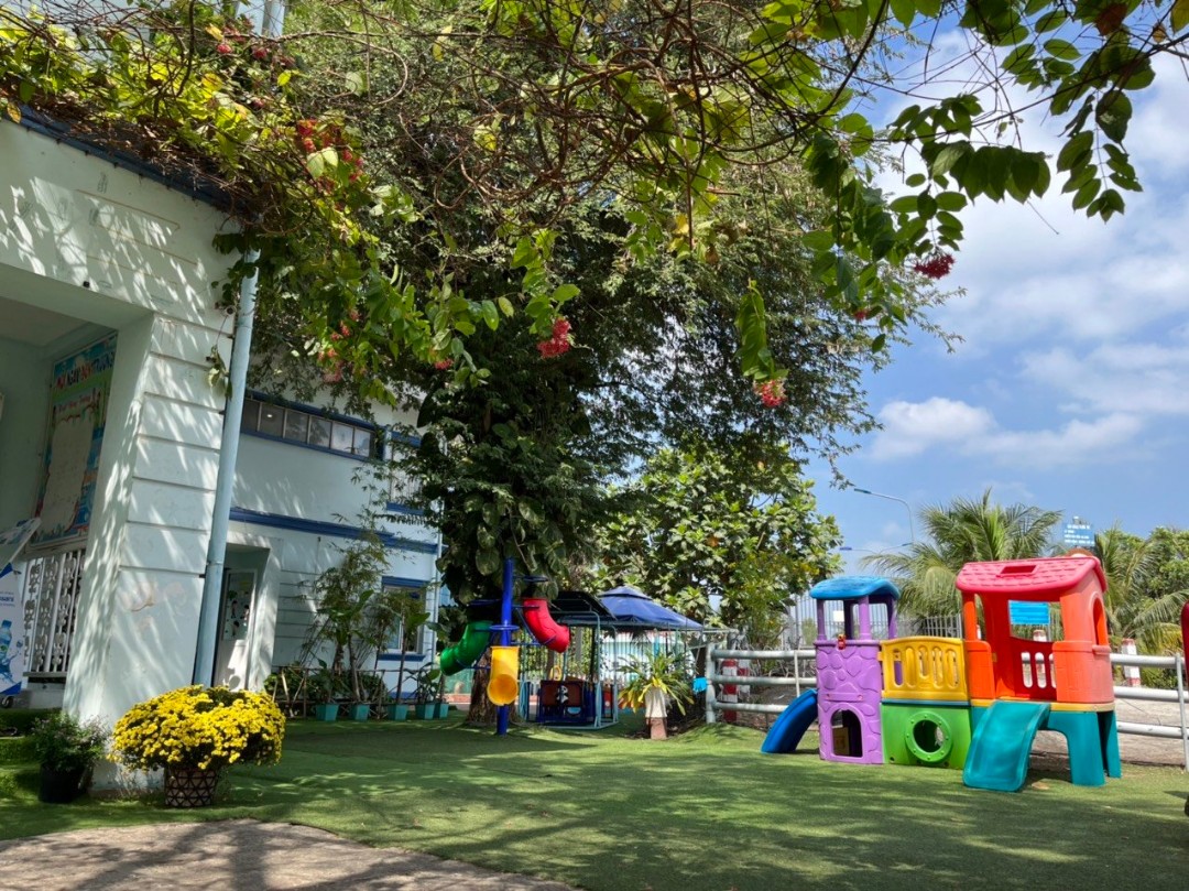 2. Không gian xanh: trường nằm ven sông với không gian bao phủ cây xanh và bóng mát. Giúp bé được sống trong môi trường trong lành, hoà mình cùng thiên nhiên.